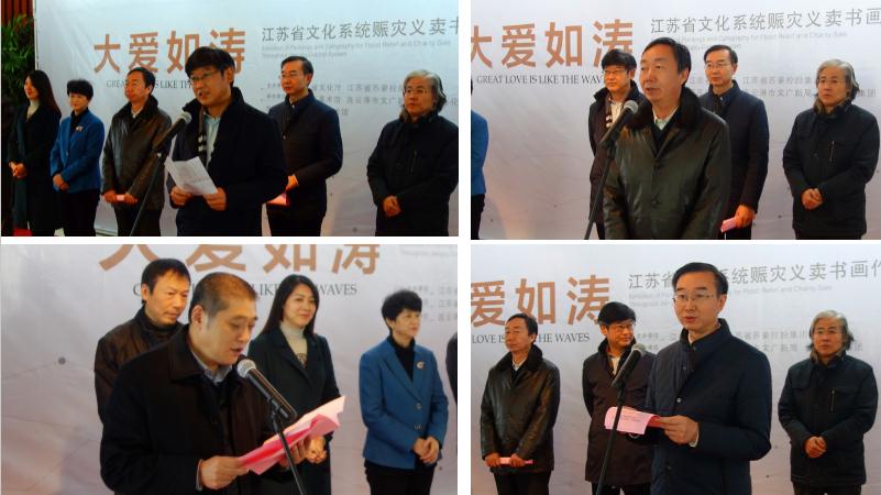 《大愛如濤——江蘇省文化系統賑災義賣書畫作品連云港展》今開幕,徐循華、董春科等領導致辭