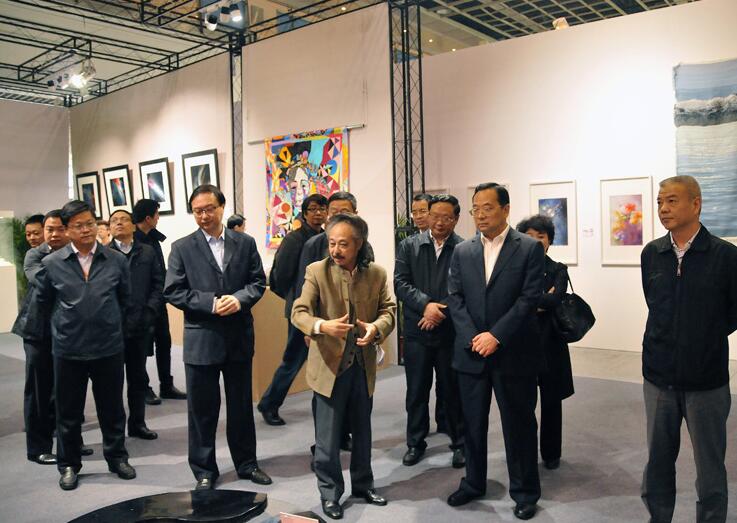 11月3日下午,蘇豪控股集團(tuán)董事長王正喜,總裁周勇陪同江蘇省副省長張雷參觀“紫金獎(jiǎng)”文化創(chuàng)意大展,一行專門參觀了由江蘇省蘇豪控股集團(tuán)主辦,江蘇愛濤文化產(chǎn)業(yè)公司承辦的民間工藝與時(shí)裝設(shè)計(jì)專項(xiàng)賽作品展。