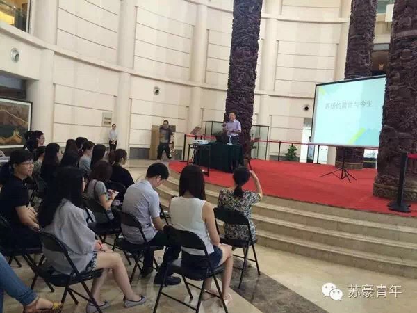 參觀完館藏珍品后,愛濤文化產(chǎn)業(yè)公司總經(jīng)理助理、研究員級(jí)高級(jí)工藝美術(shù)師呂元先生為大家做了一場題為《蘇繡的前世與今生》的藝術(shù)講座。講座在宏偉的木雕巨作“四大名柱”下開講,呂元先生旁征博引,從中華民族的起源講起,系統(tǒng)而細(xì)致地將蘇繡這一民族傳統(tǒng)工藝的前世今生講得精彩透徹,獲得了青年同事們的一致好評(píng)。