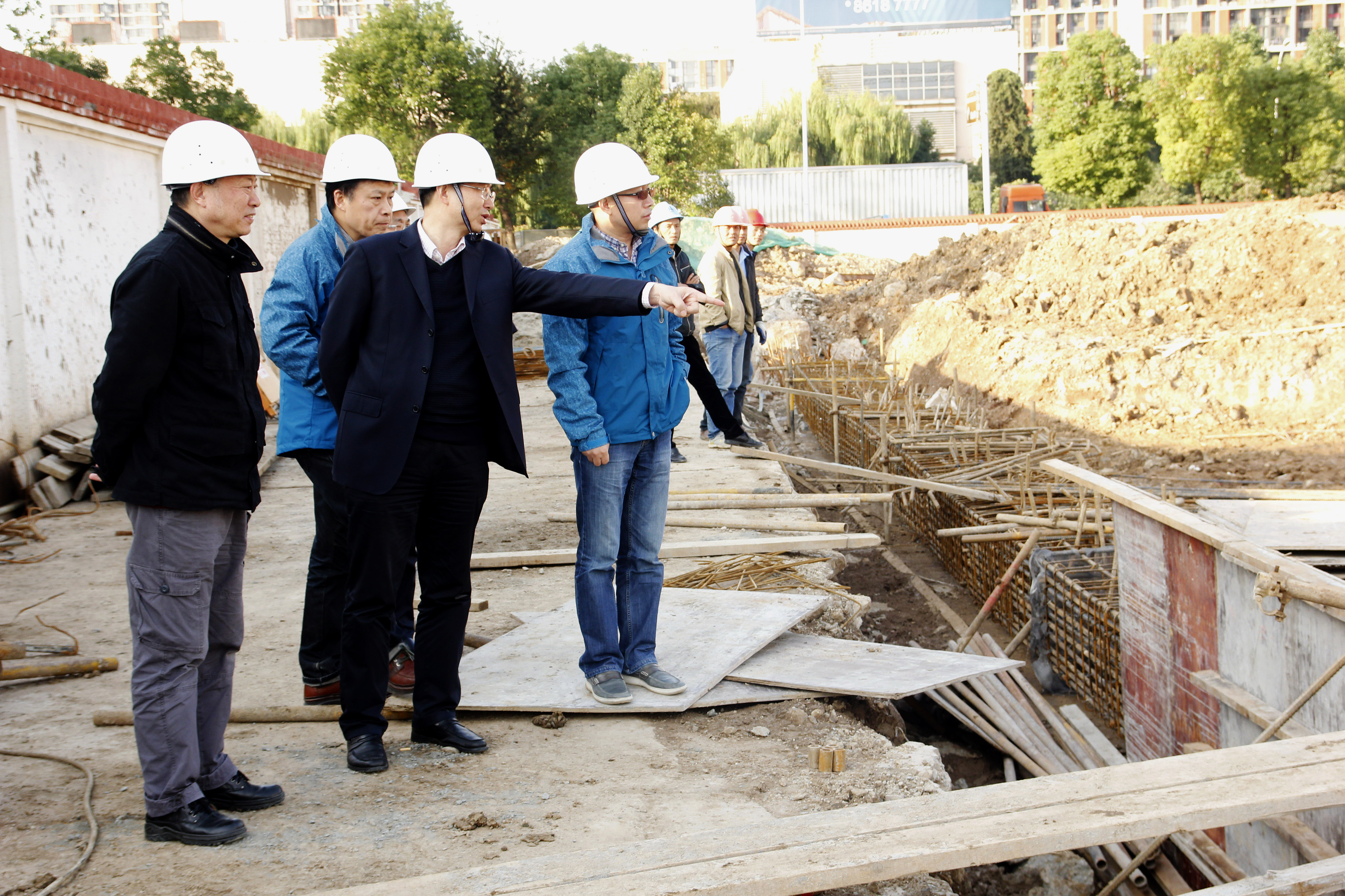 2016年11月1日下午,文化集團黨委書記張發松帶隊來到愛濤文創中心項目部建設現場,檢查項目建設情況、督促落實“兩個責任”。
